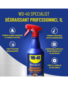 Pour un entretien optimal et durable de votre matériel, nous vous recommandons d’utiliser le produit dégraissant professionnel de chez WD-40. Sa formule permet de répondre aux exigences des secteurs industriel, automobile ou domestique.