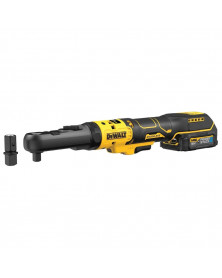 La clé à cliquet sans fil Dewalt est livrée avec deux batteries POWERSTACK 1.7ah 18V, un chargeur, 2 embouts et une mousse pour servante.
