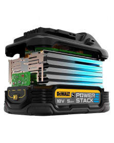 Les batteries Dewalt Powerstack 5ah XR 18V délivrent jusqu'à 50% de puissance en plus par rapport aux modèles à cellules cylindriques 5ah DCB184.